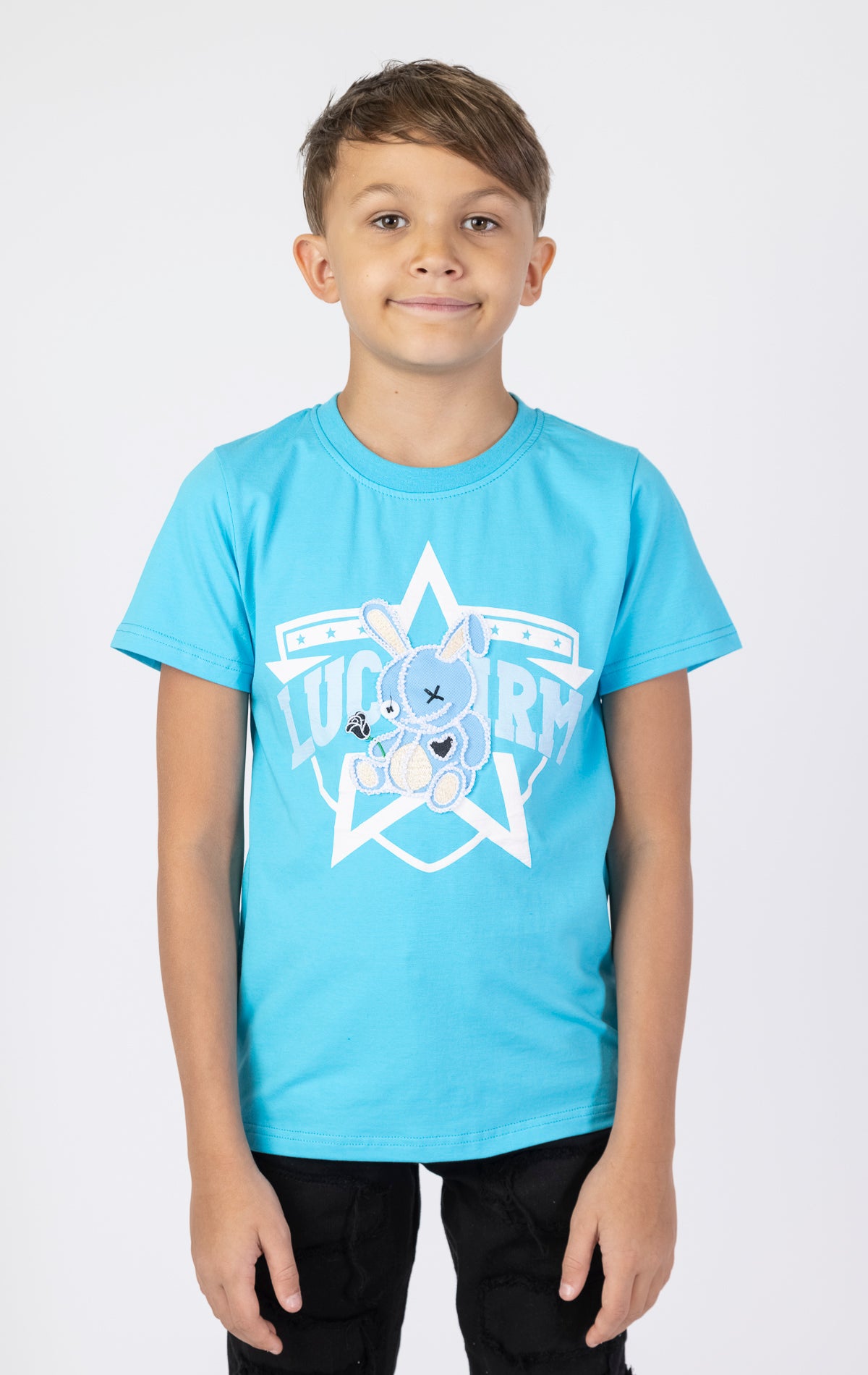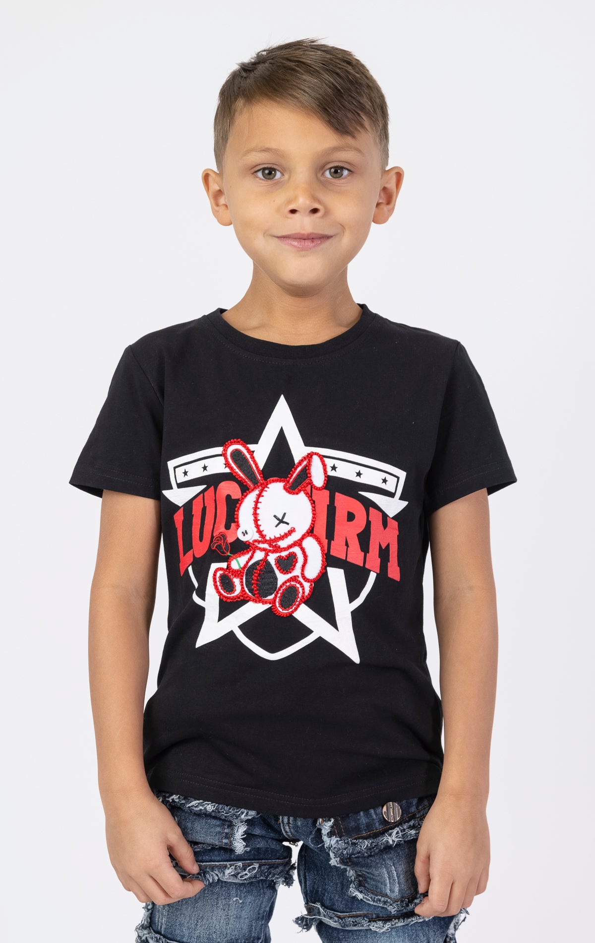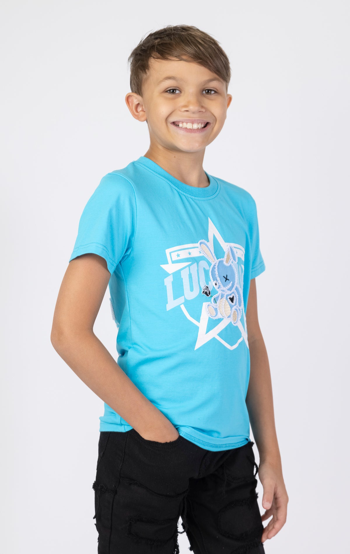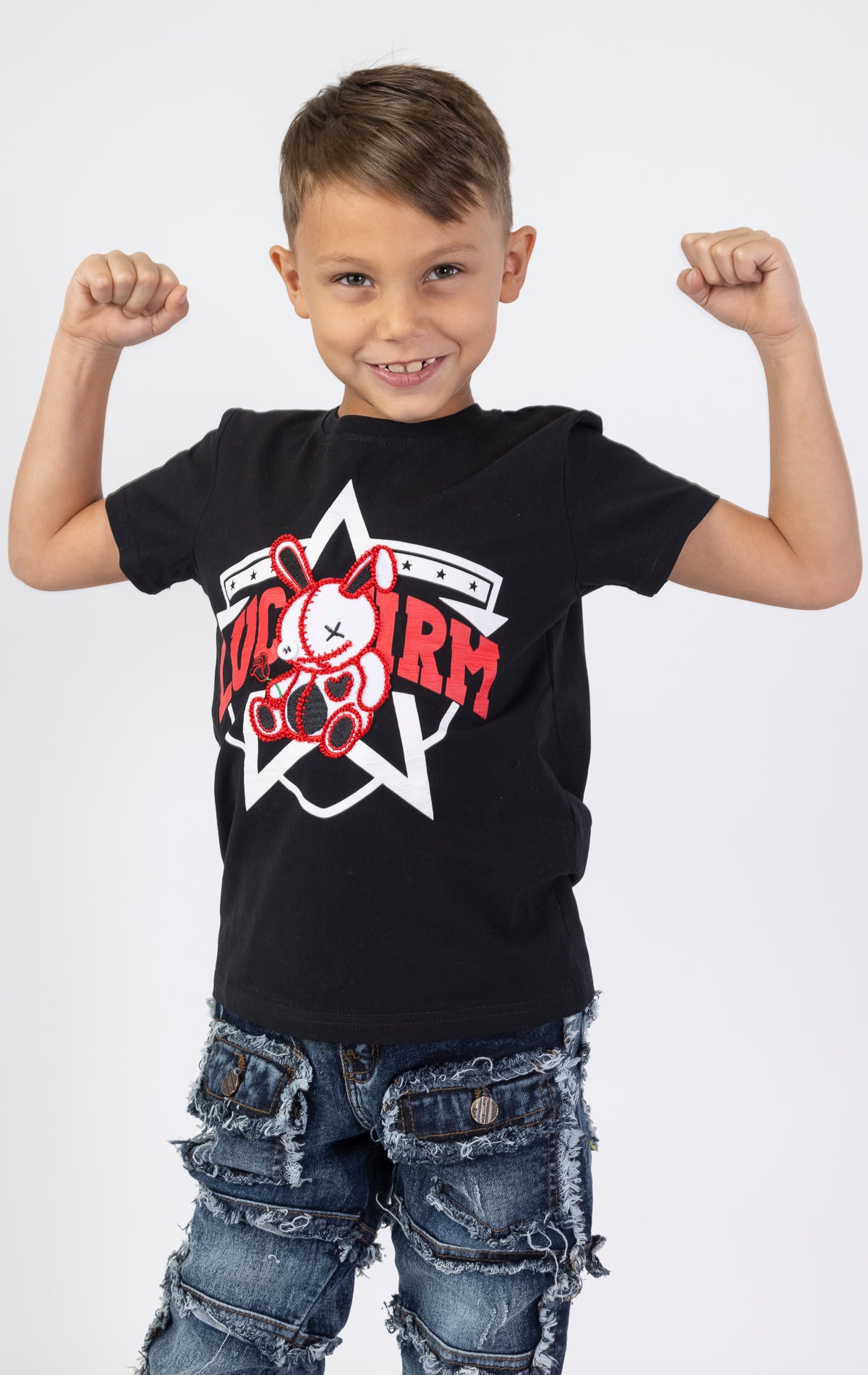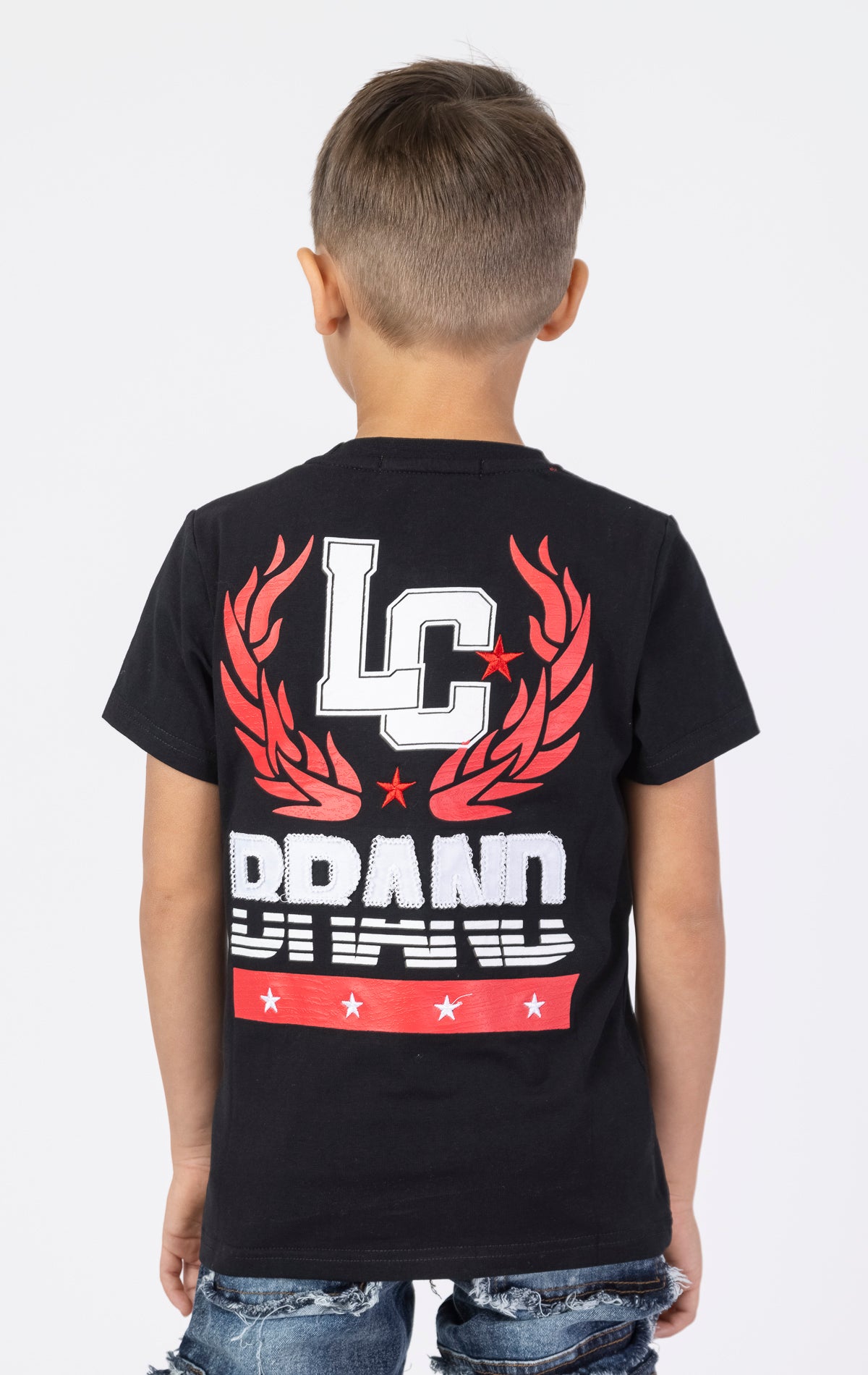 Unleash Your Child's Creativity:  Let their imagination soar with our Kids Printed and Patched Crewneck Tee. This playful and comfortable shirt features a unique blend of prints and patches, making it a standout piece for any young adventurer.