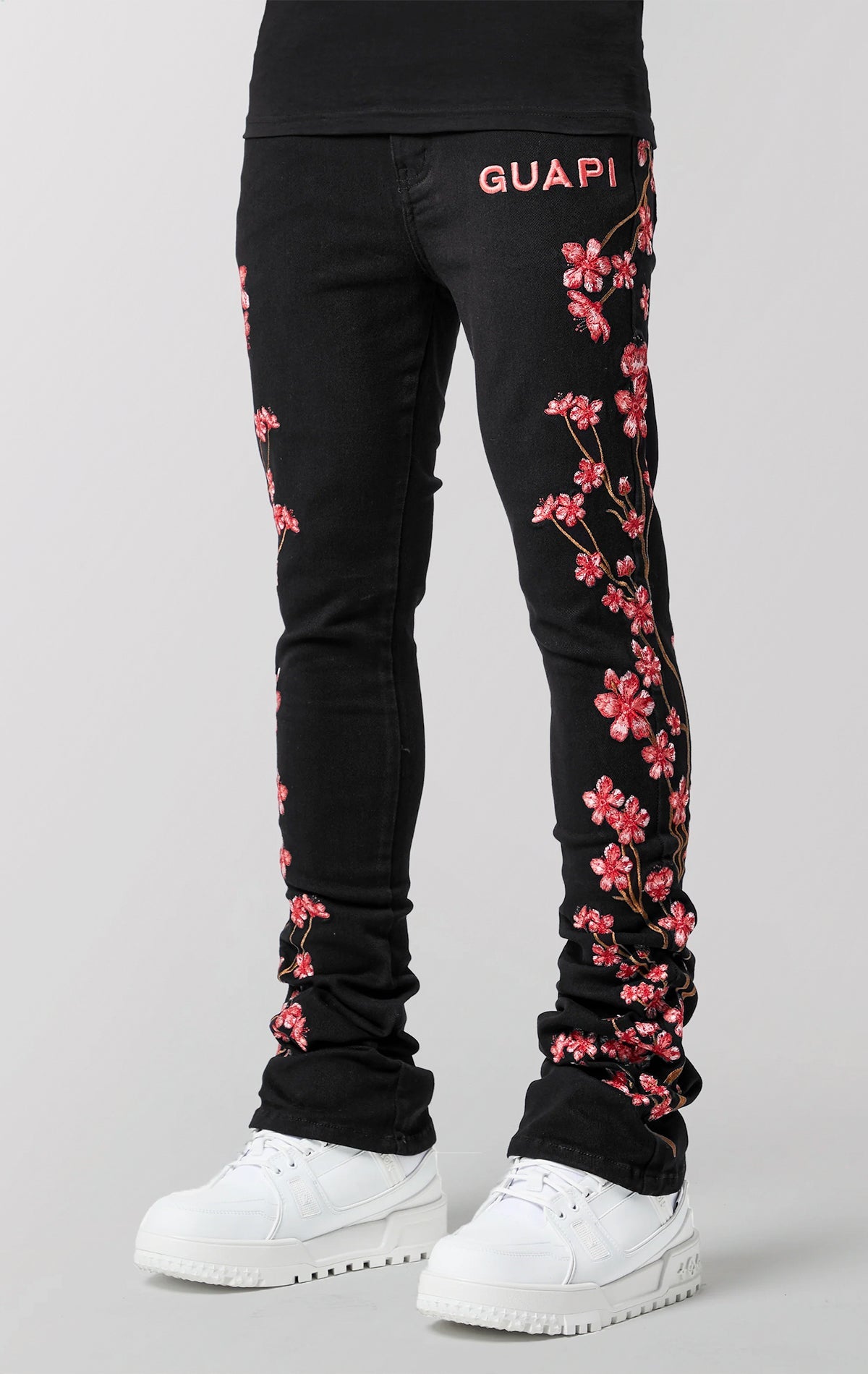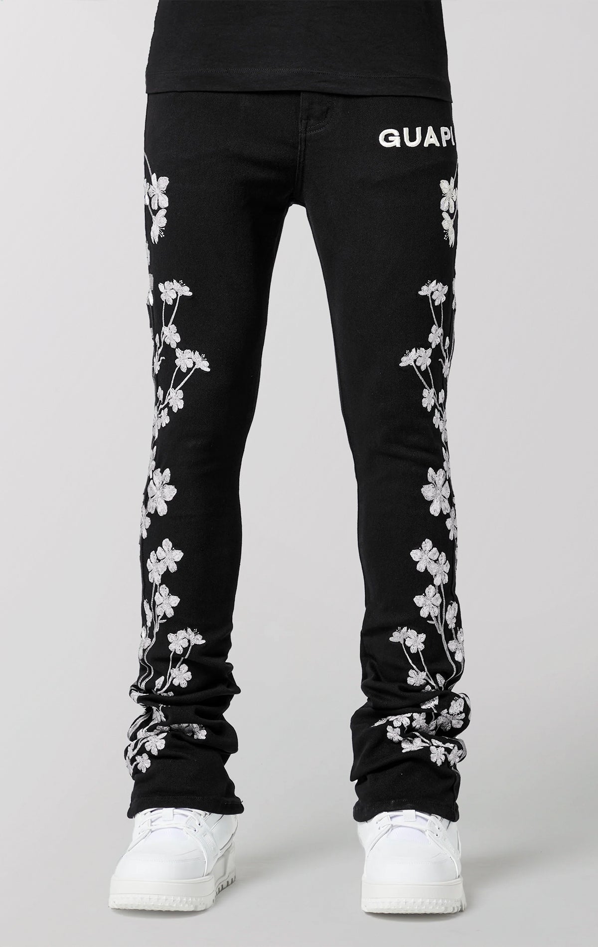 Experience the artistry of denim with the Obsidian Black Blossom Denim V3. These jeans boast a deep black color accented by vibrant floral embroidery running along both side seams, creating a striking and unique look. The stacked fit delivers a modern and flattering silhouette, while the premium fabric ensures comfort and durability.