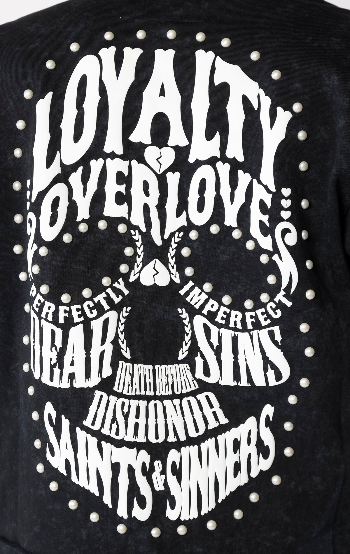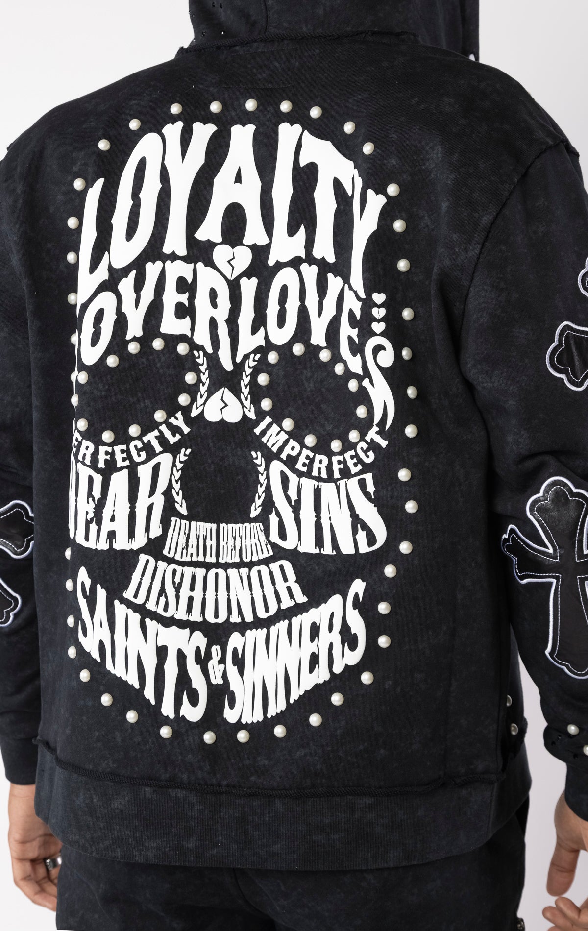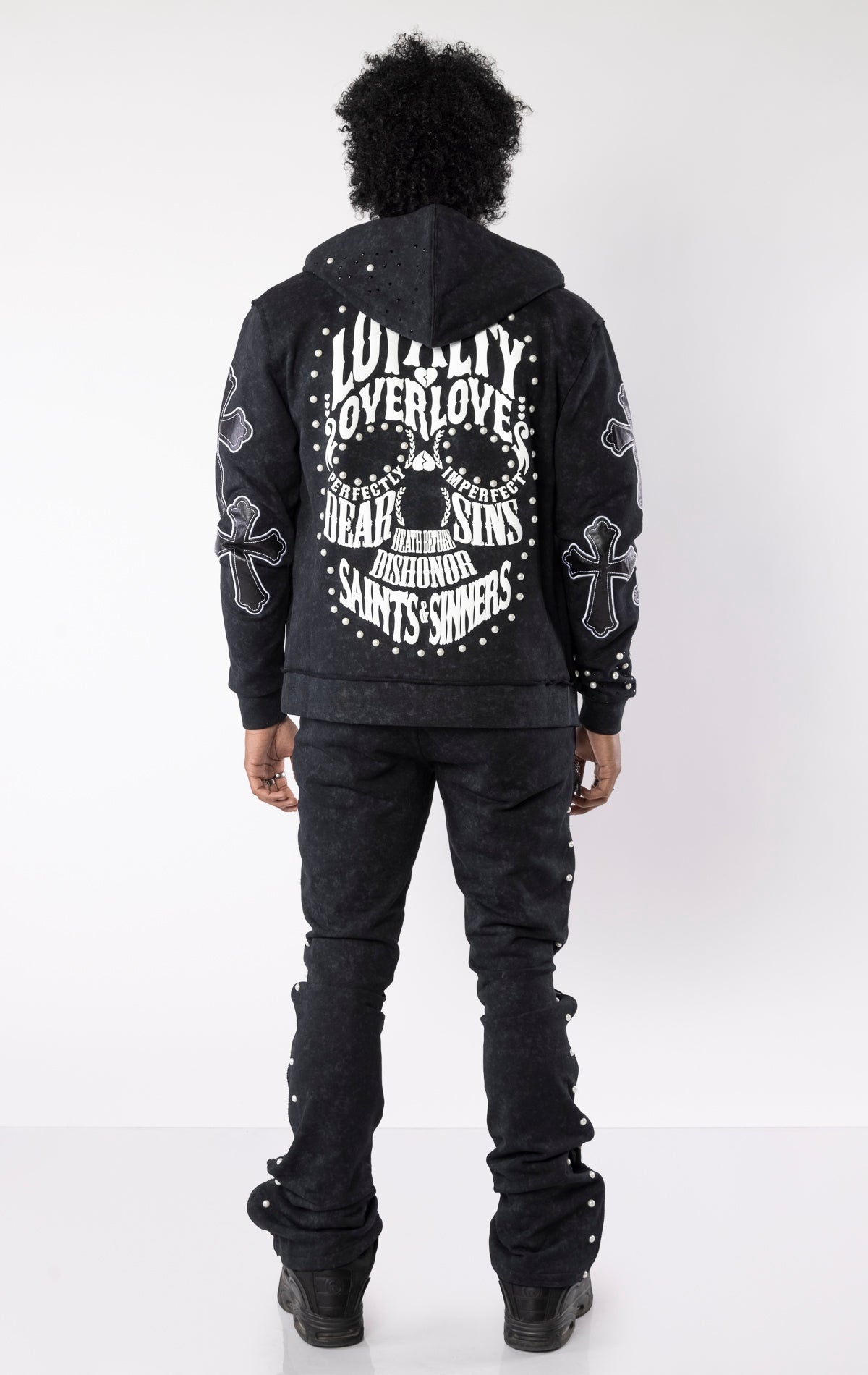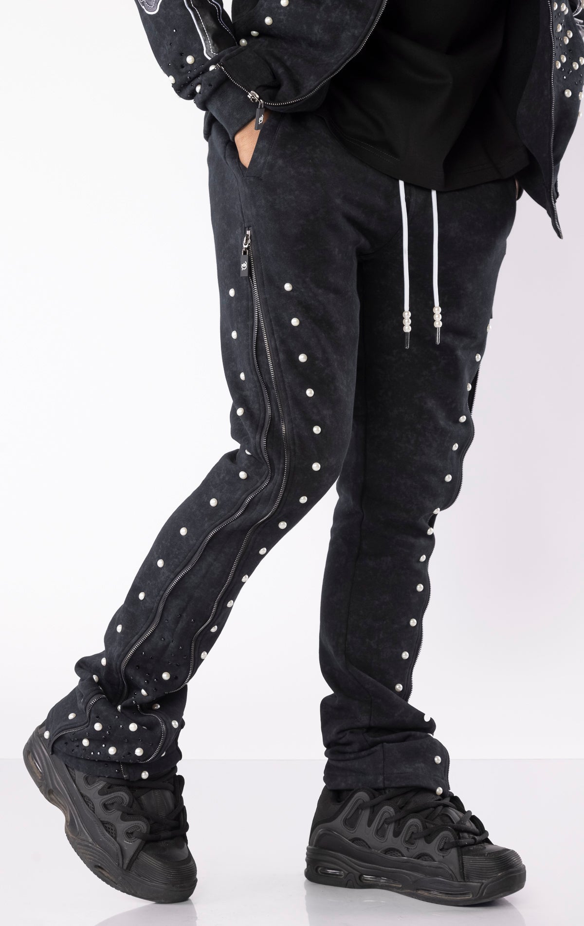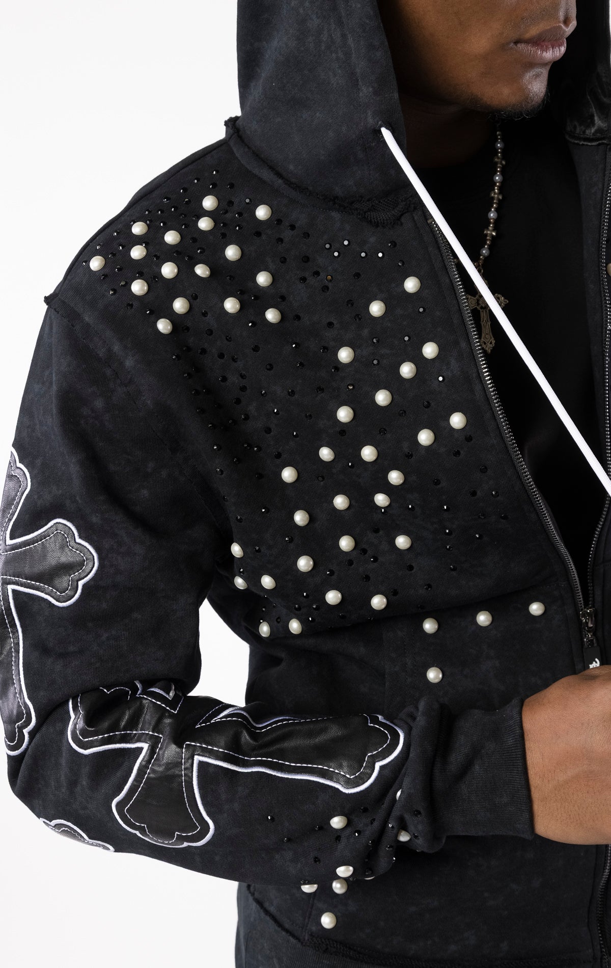 Elevate your streetwear collection with the Loyalty Hoodie Set, a fusion of luxury and urban fashion. Crafted from premium French terry fabric, this set offers unmatched comfort with an effortlessly stylish edge. Designed with rhinestones, heated pearls, and PU appliqué detailing, it embodies timeless streetwear with a bold statement. The zip-up hoodie features a satin-lined hood, an open raw seam, and pearl-tipped drawstrings, while the matching pants come with an extra-long inseam and contrast drawcord for a refined finish. This set is a must-have for those who appreciate high-end, fashion-forward street style.