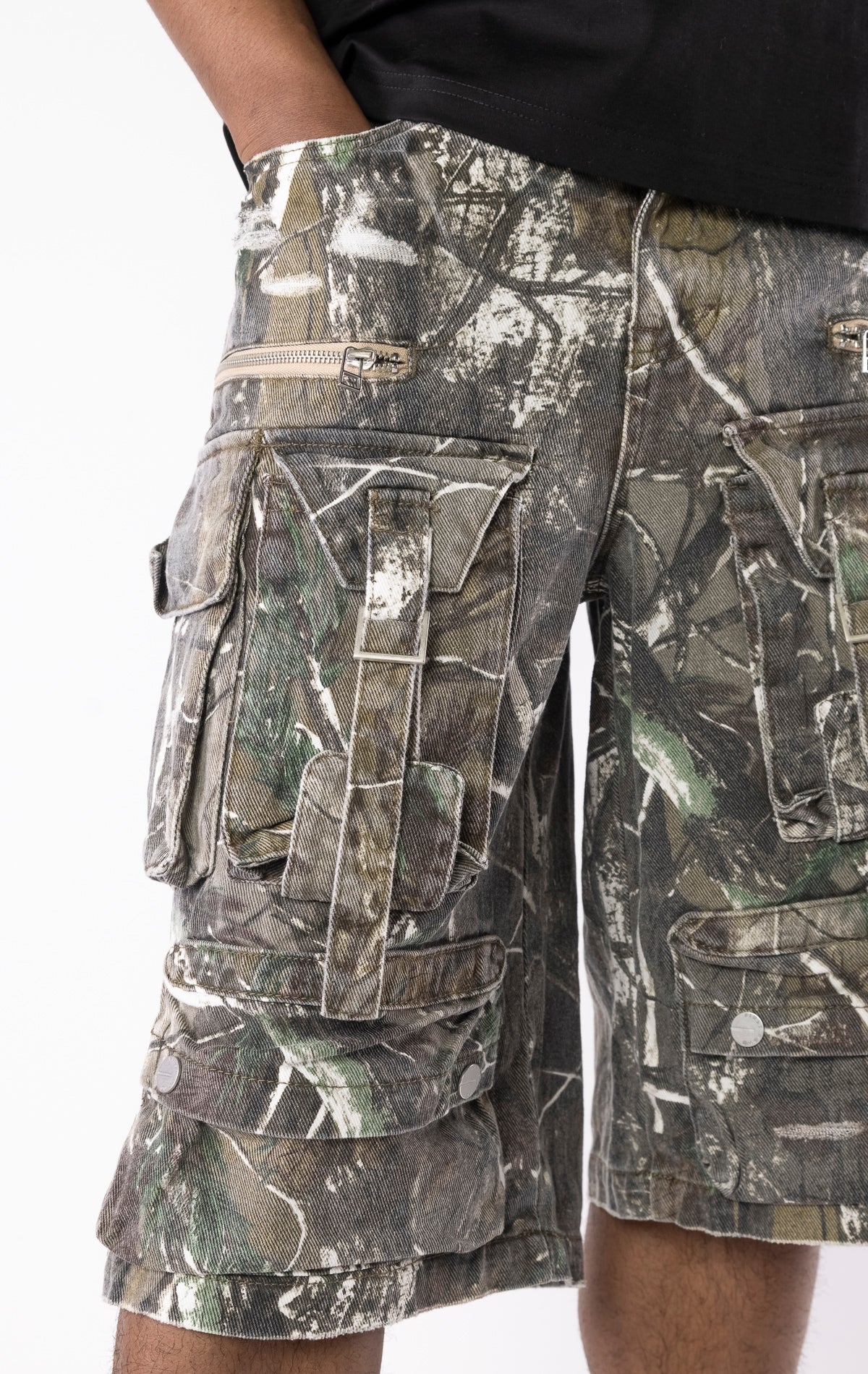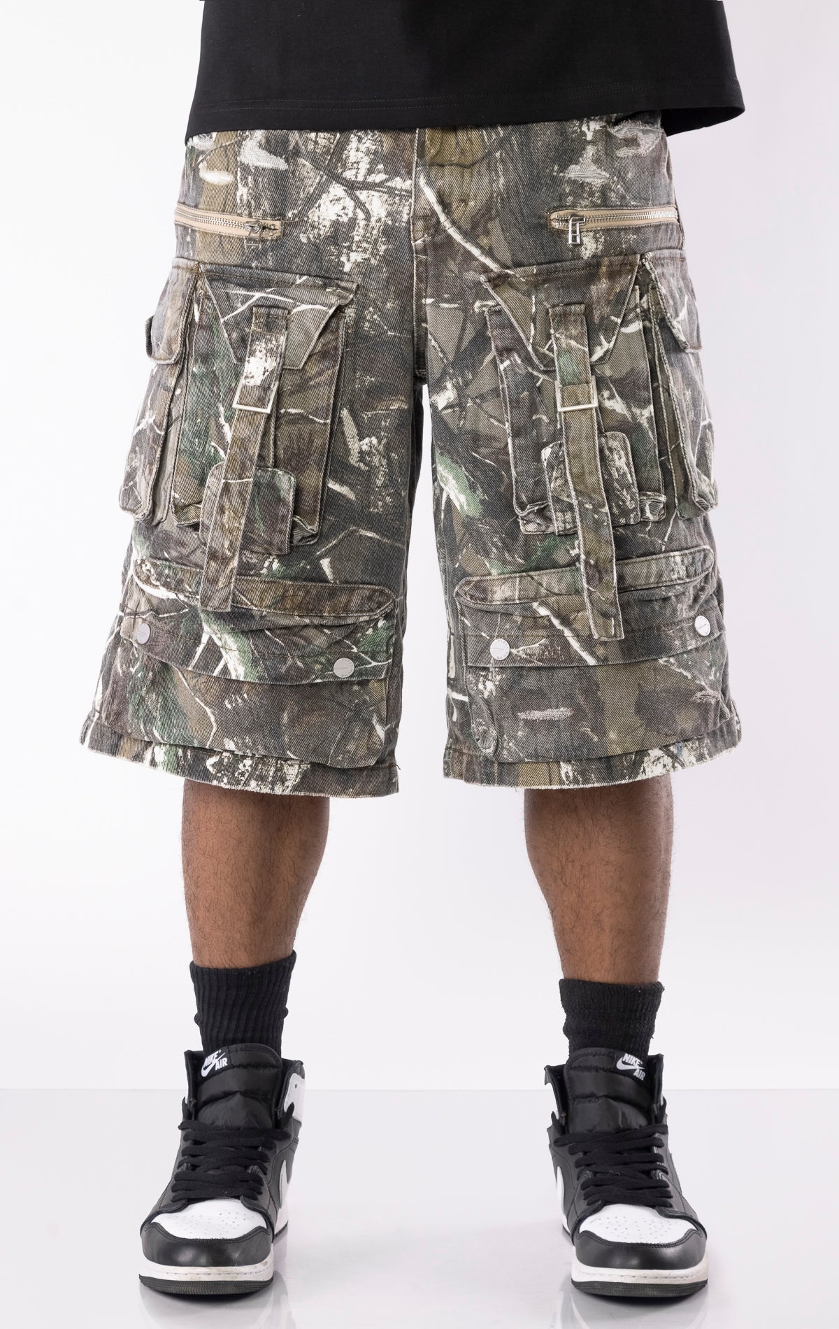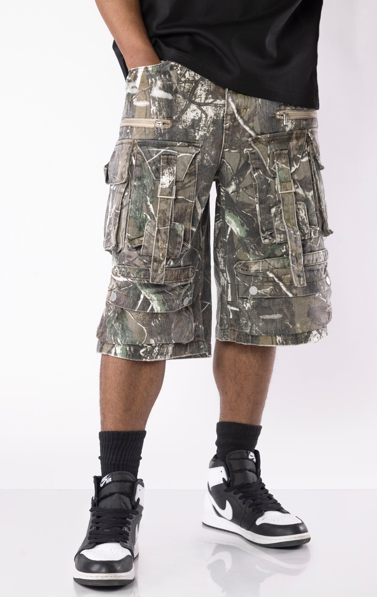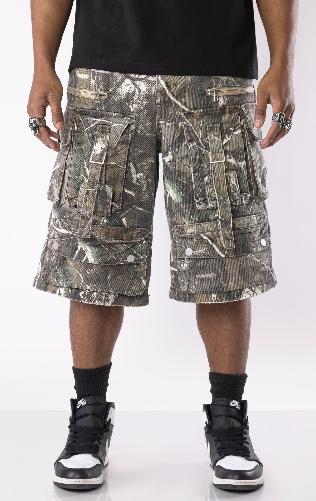 Take your streetwear style to the next level with the Washed Multi Cargo Denim Jorts, a perfect blend of utility and fashion. Designed for versatility and comfort, these 100% cotton jorts feature a washed finish with bold camo prints, adding a rugged edge to your look. The classic 5-pocket construction is complemented by functional cargo pockets, providing extra storage while maintaining a sleek, structured design. Finished with a zip-fly closure, these jorts are a must-have for effortless urban style.