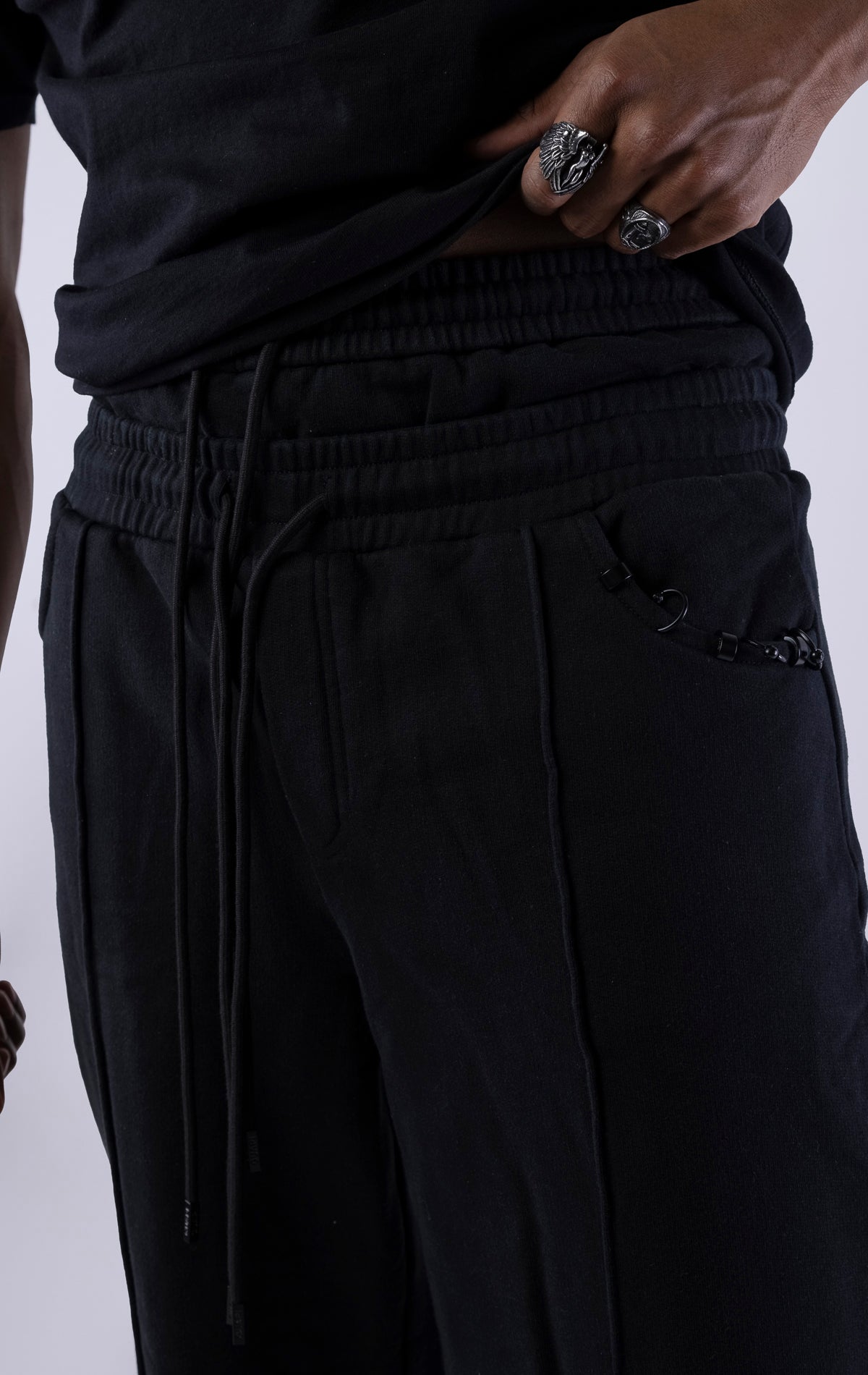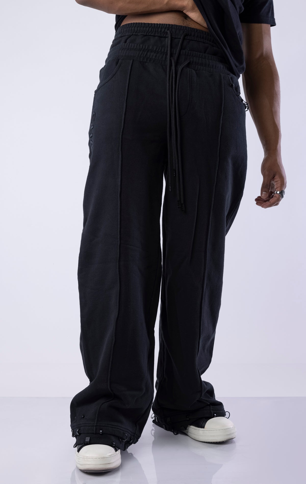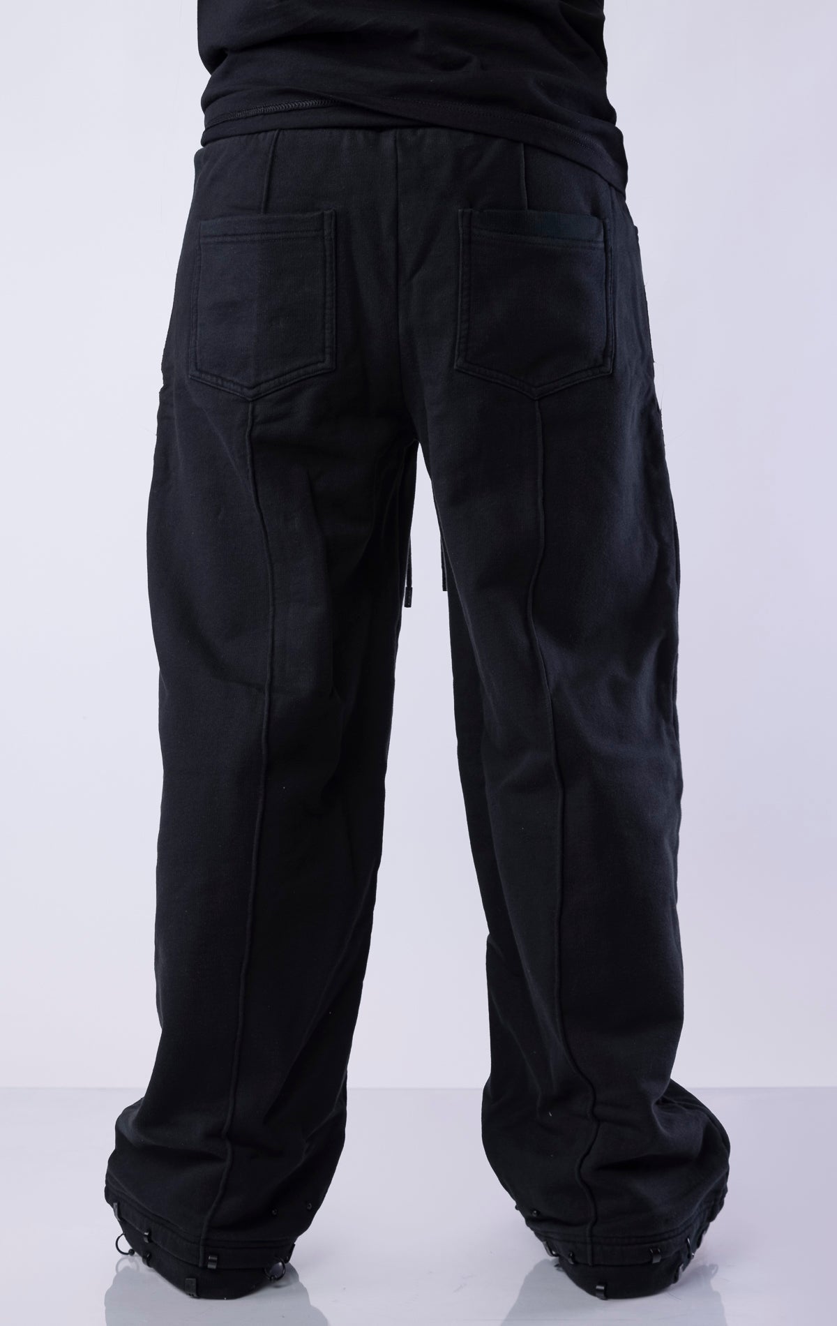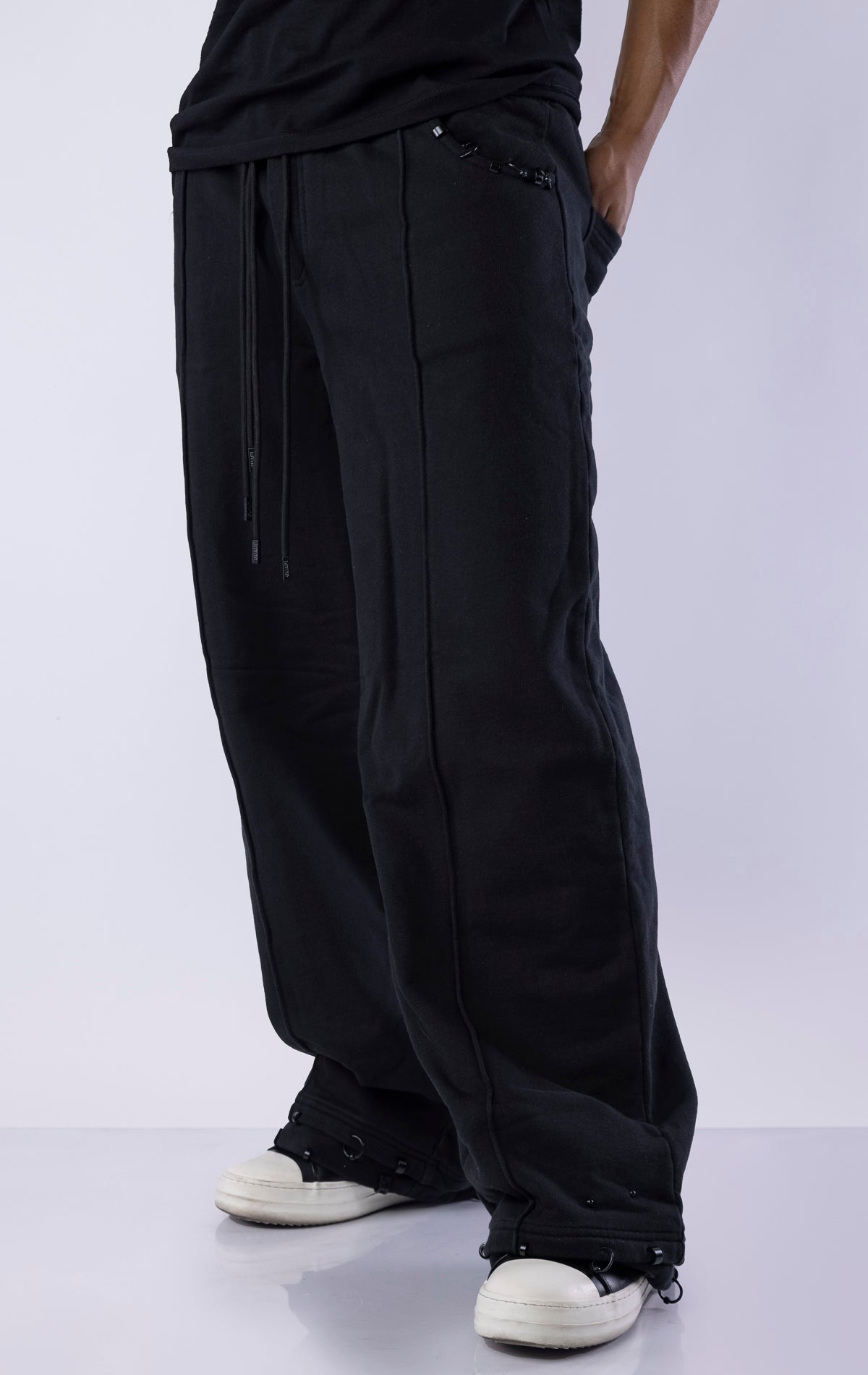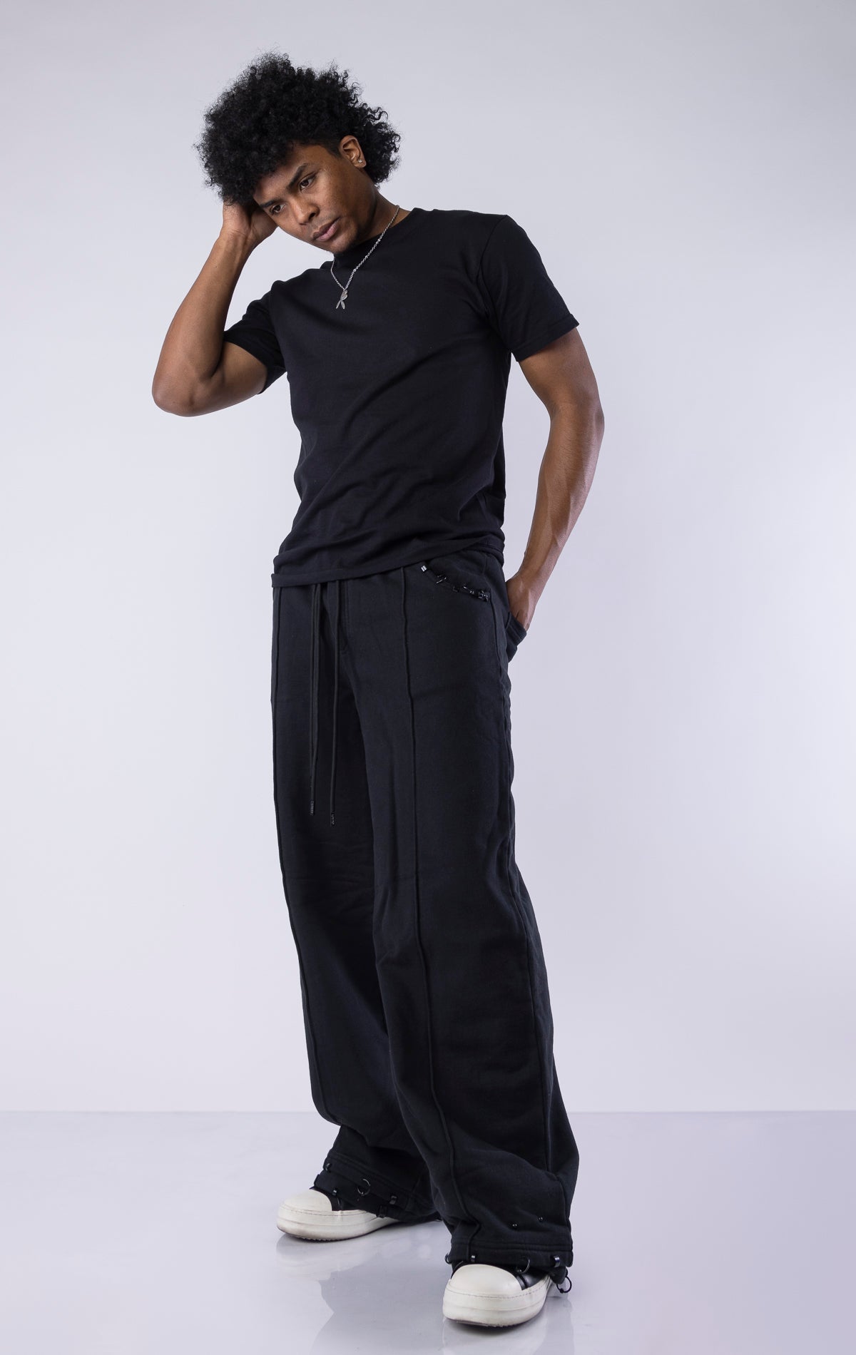 Elevate your streetwear with these edgy Black Pierced Sweatpants. Designed for a true-to-size, baggy fit, these sweatpants feature unique piercings along the bottom edge and pocket edges for a bold and distinctive look.