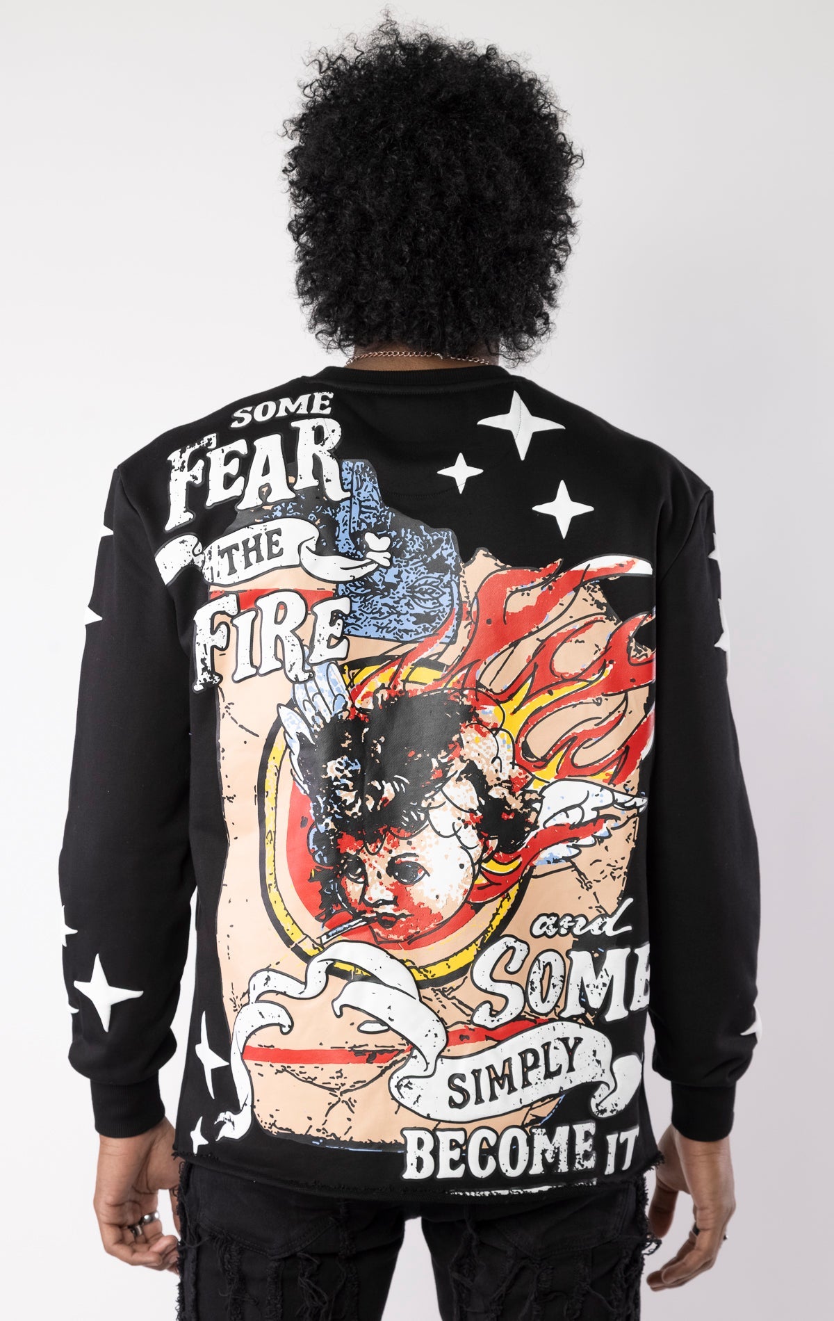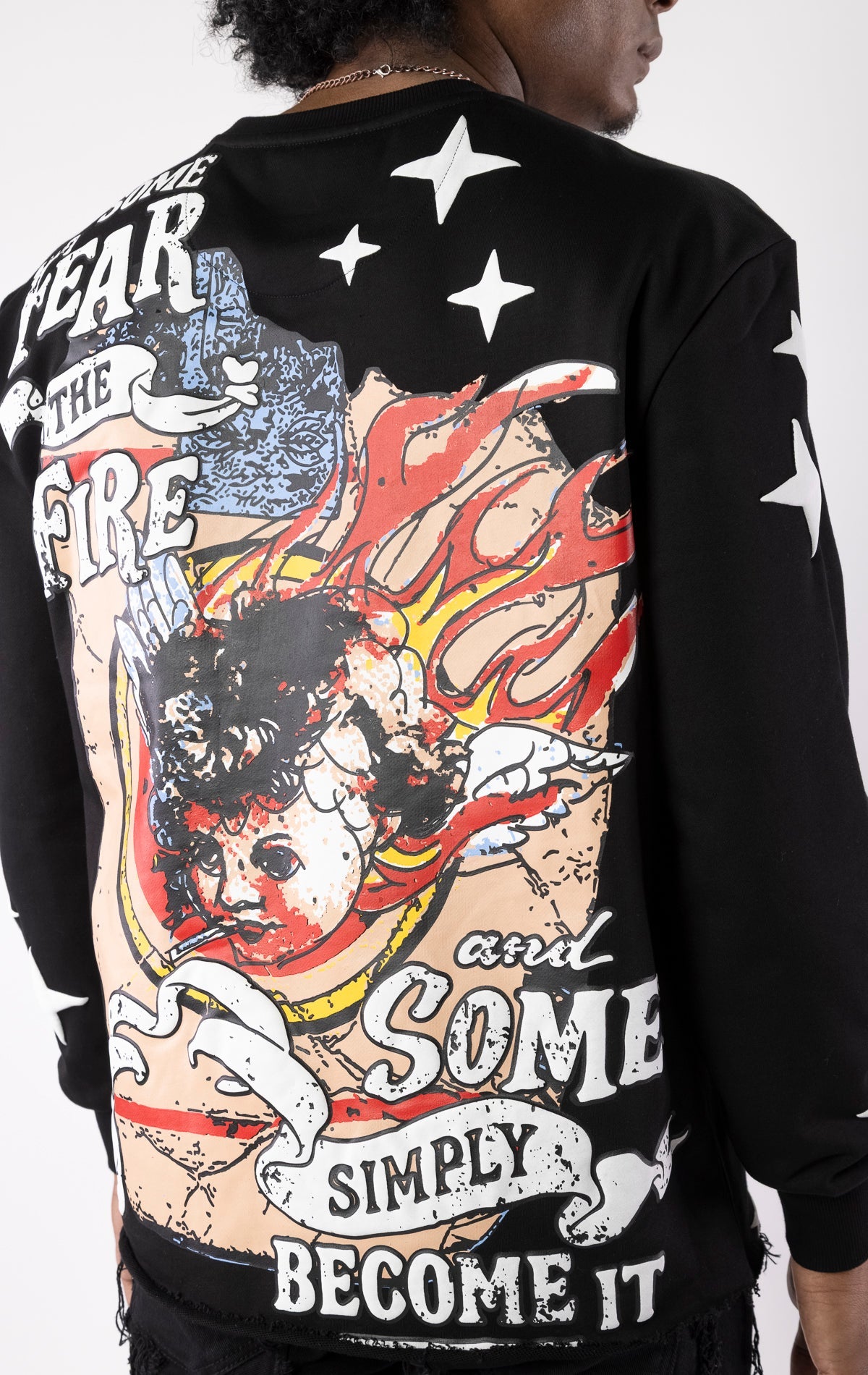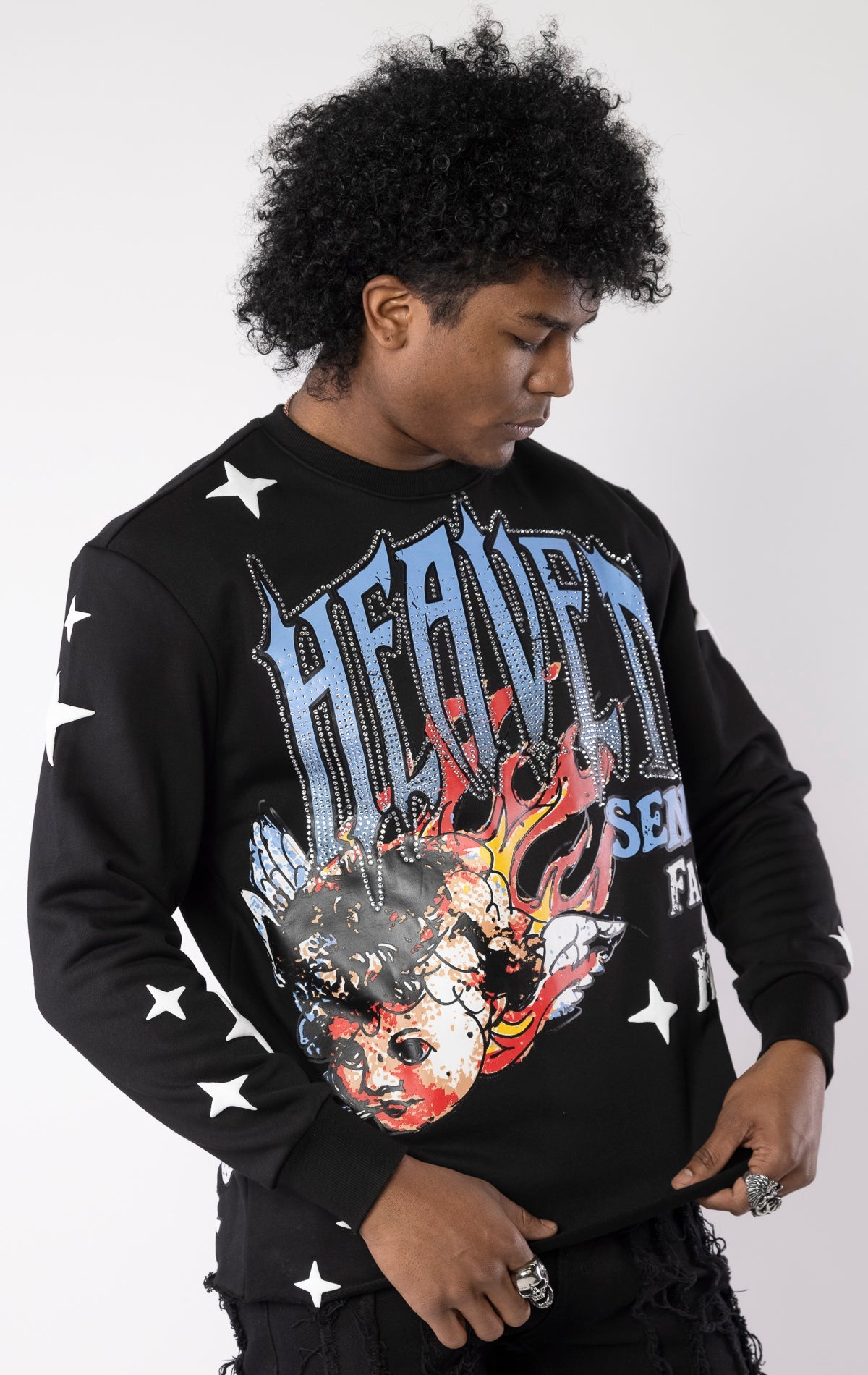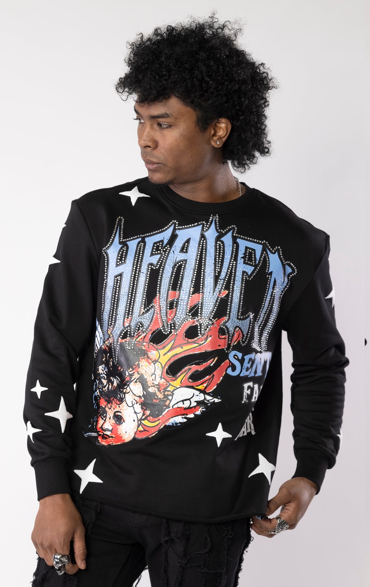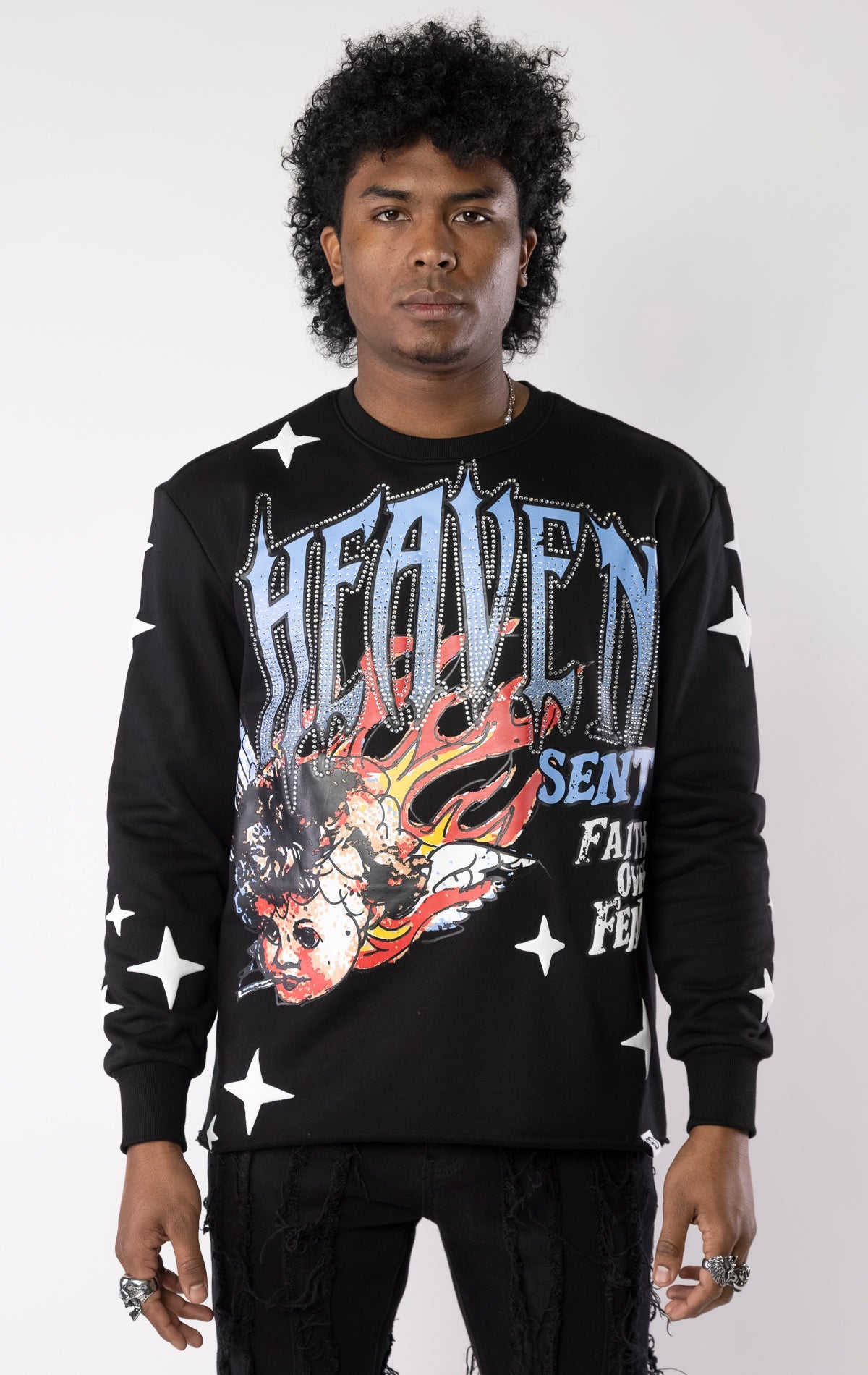 Step up your streetwear game with the Heaven Sent Crewneck Sweatshirt, a perfect fusion of bold design and premium comfort. Crafted from high-quality French terry fabric, this sweatshirt offers both durability and a luxurious feel. Featuring unique puffed and plastisol print, along with rhinestone detailing, it delivers a striking, elevated look. The "DAMAGE" design with raw hem and woven label adds an edgy, distressed touch, making it a must-have for fashion-forward individuals.