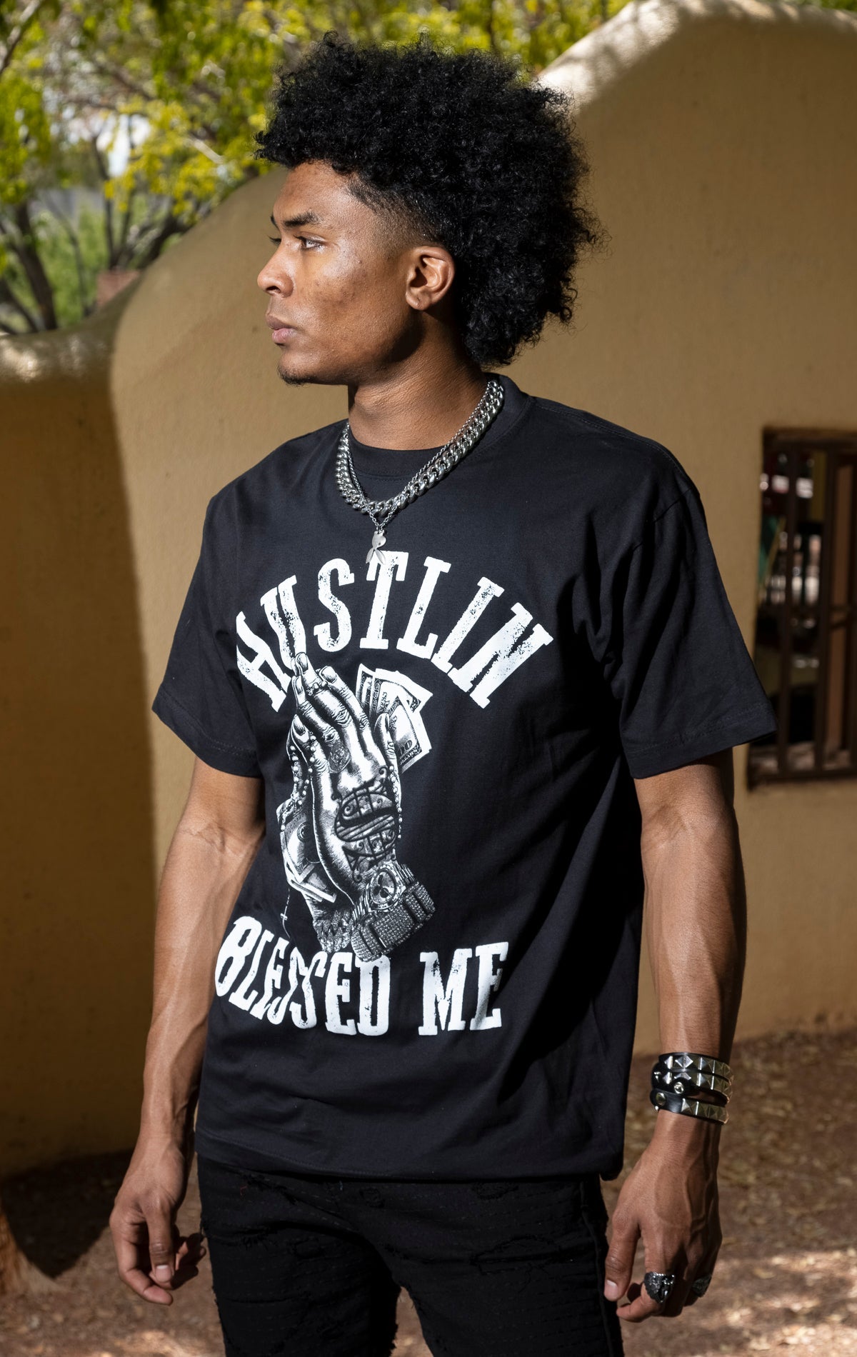 Hustlin' Blessed Me Crewneck T-Shirt. This stylish tee features a bold and inspiring message.