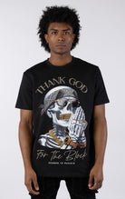 The Thank God For The Block T-Shirt demands attention with a striking, high-detail illustration that embodies true street confidence.