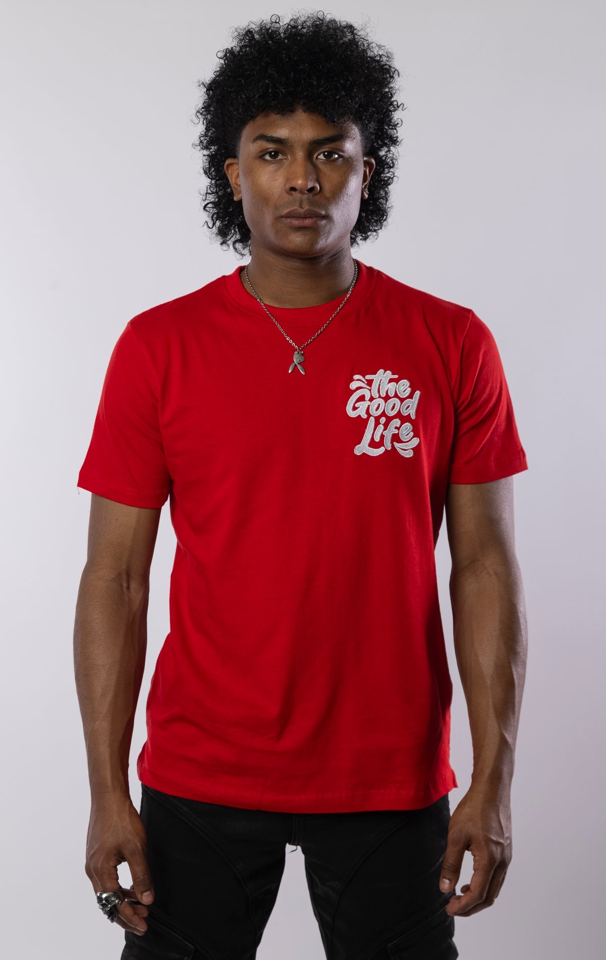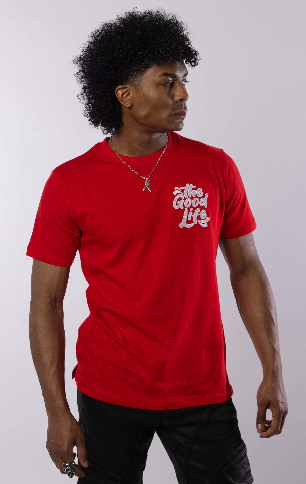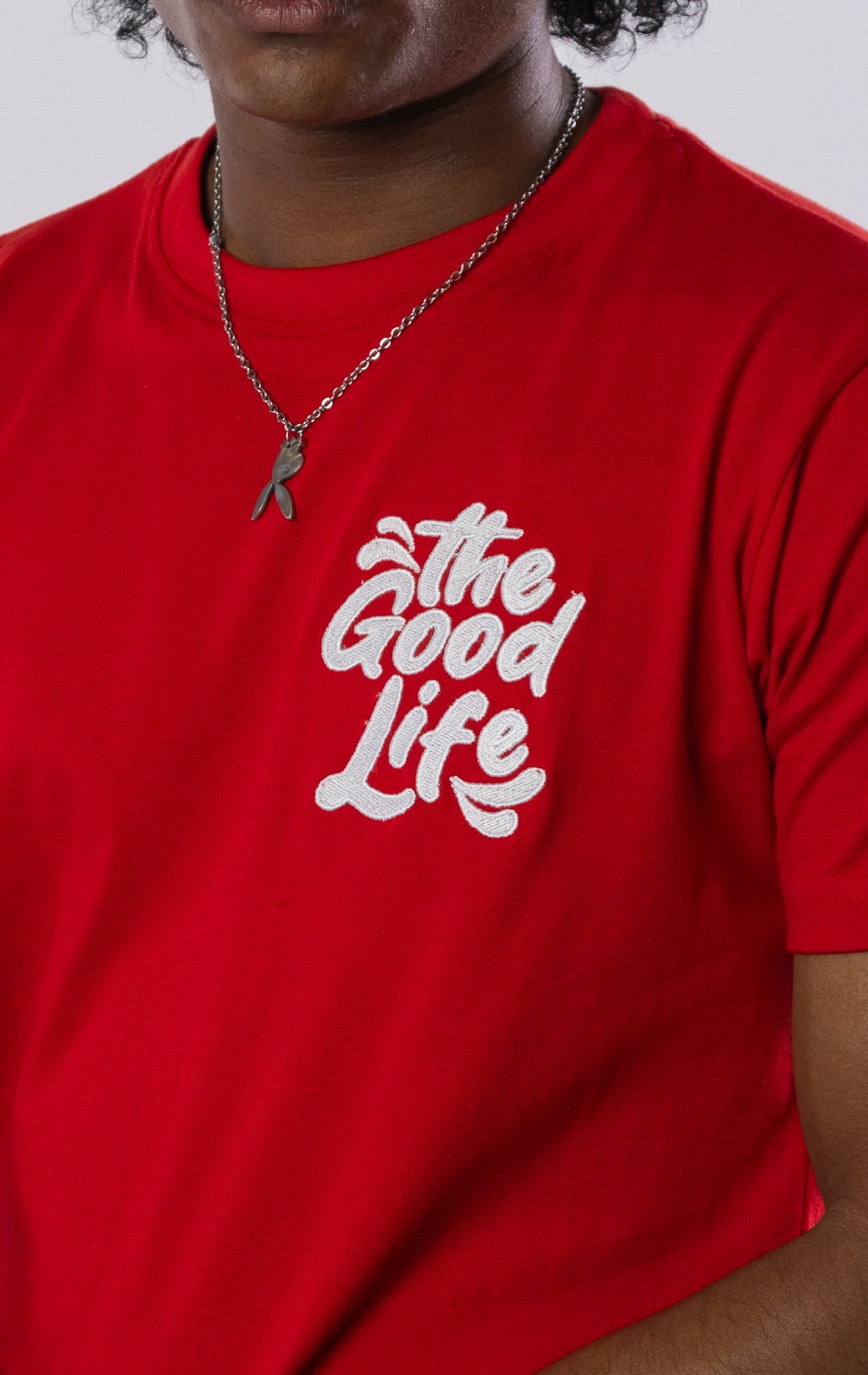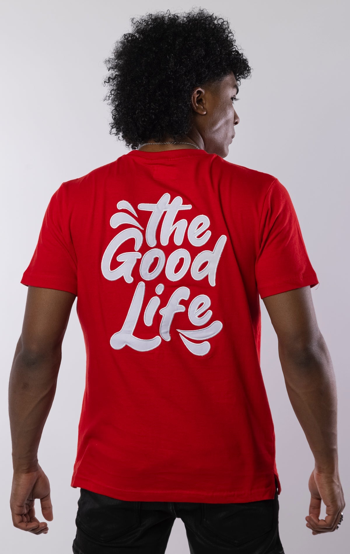 Live the vibe in this Crewneck T-Shirt, featuring "The Good Life" embroidery on the upper left chest and across the back. Crafted for comfort with a classic short sleeve fit, this tee keeps it minimal in front with bold messaging in the back. Whether you're dressing it up or keeping it casual, it's your go-to for effortless style with meaning.